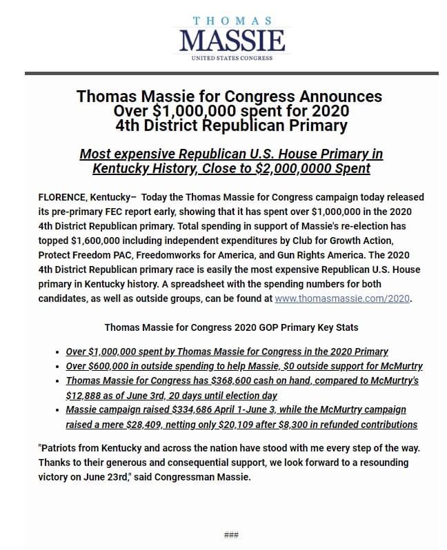 Thomas Massie for Congress‏Geverifieerd account @MassieforKY 11 jun.