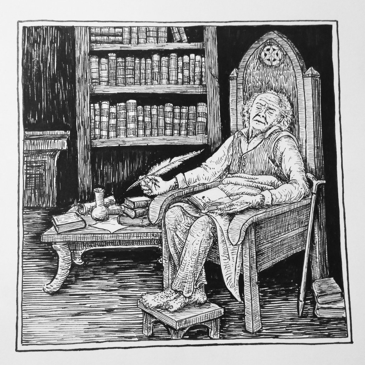 #Inktober2019day8 "frail" - old Bilbo in Rivendell.#Tolktober#tolkienartpic.twitter.com/9vYPg0An4q