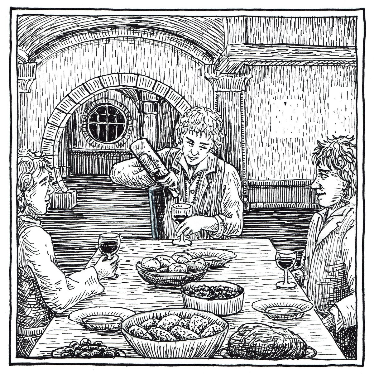 My #TolkienBirthdayToast with a glass of good whiskey. And my drawing of Frodo's farewell feast (made for Inktober 2018) that I think is quite fitting.#TolkienBirthdayToast2020pic.twitter.com/IXh4SGLdr4