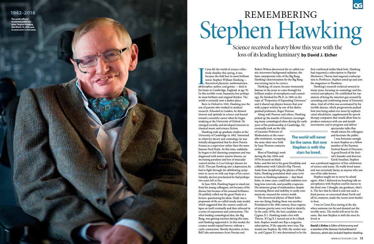 Astronomy editor David Eicher remembers Stephen Hawking. http://ed.gr/vz5r pic.twitter.com/uSj4K3huf2