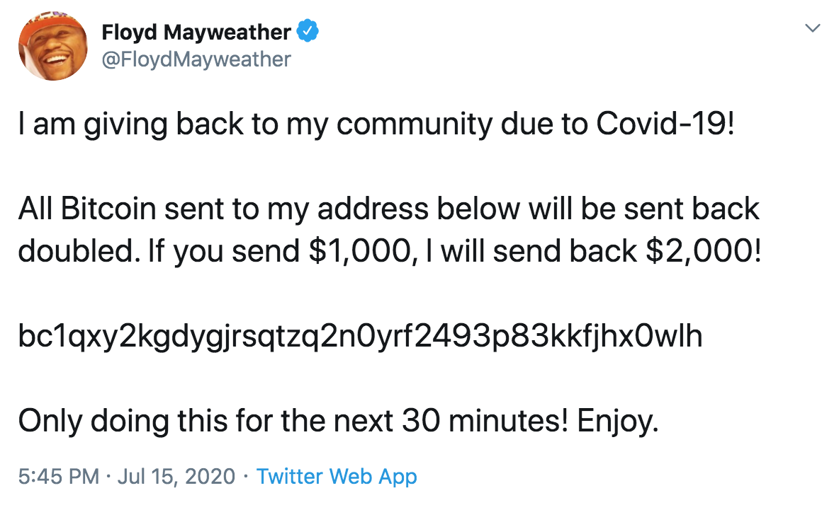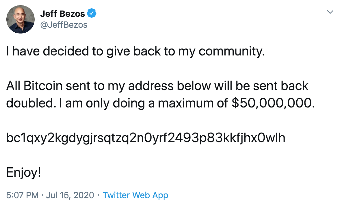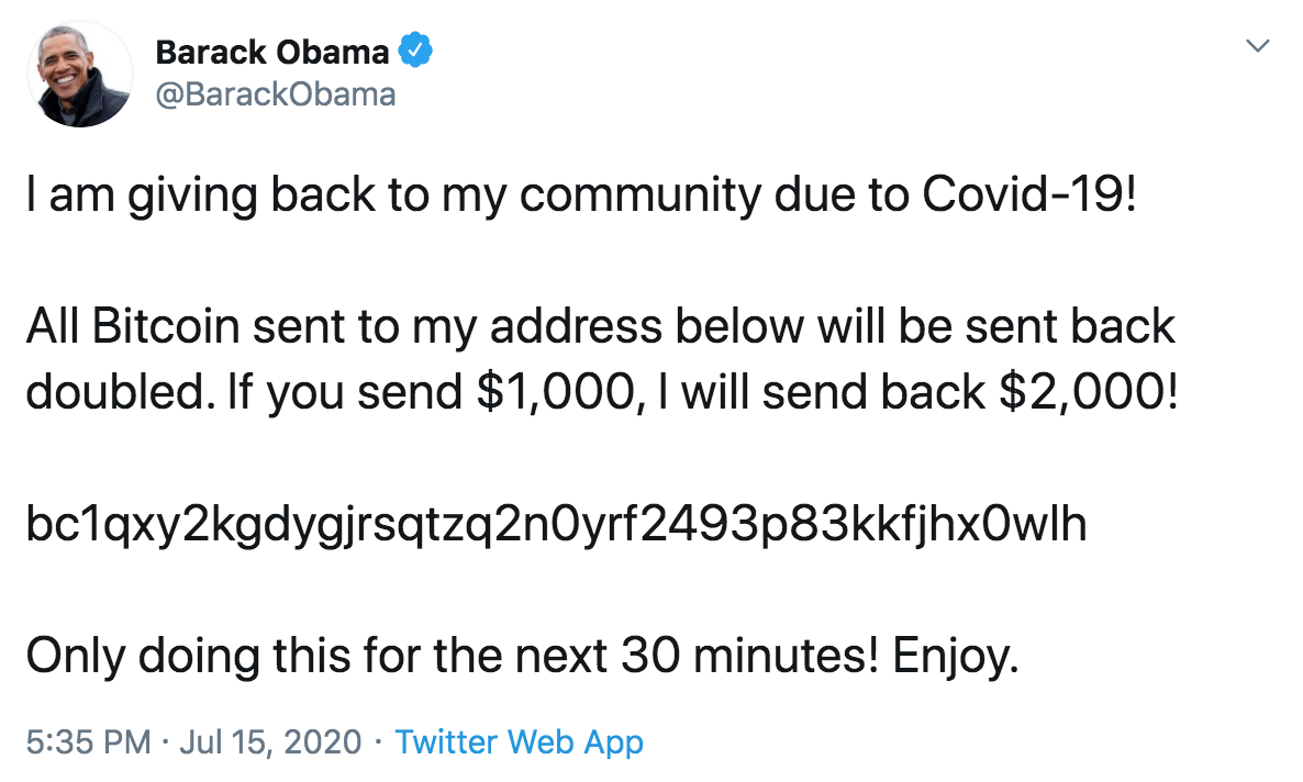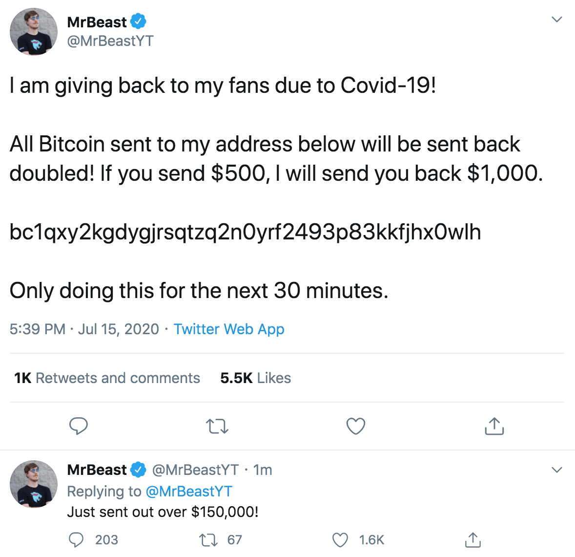 someone has managed to hack a slew of large verified twitter accounts to spread a bitcoin scam. they've made around $56k so far it seems...pic.twitter.com/wjjA7mHqCW
