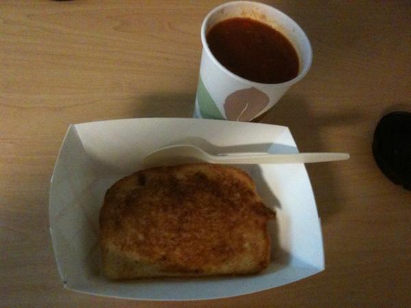 Tasty grilled cheese & tomato soup for lunch. Thanks @willandpops !!pic.twitter.com/fy2NC7mx