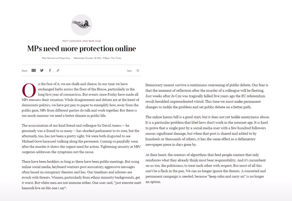 Behind a paywall and unlikely co author but…https://www.thetimes.co.uk/article/mps-need-more-protection-online-gw27srj8j …