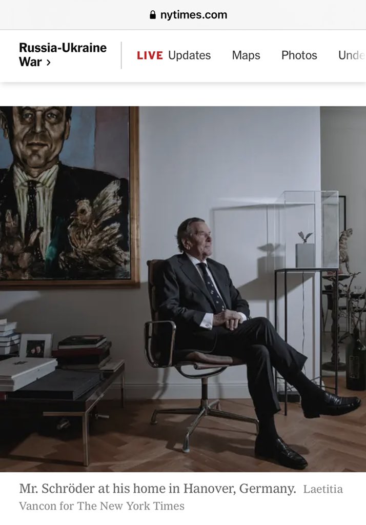 #Schröder im Austausch gerne aktuelle Bilder aus#Mariupol oder#Butscha an. Ihm ist wohl egal, wie blutverschmiert seine Rubel sind, mit denen#Putin ihn kauft. Quelle: https://www.nytimes.com/2022/04/23/world/europe/schroder-germany-russia-gas-ukraine-war-energy.html …pic.twitter.com/oVJD3AUEOX