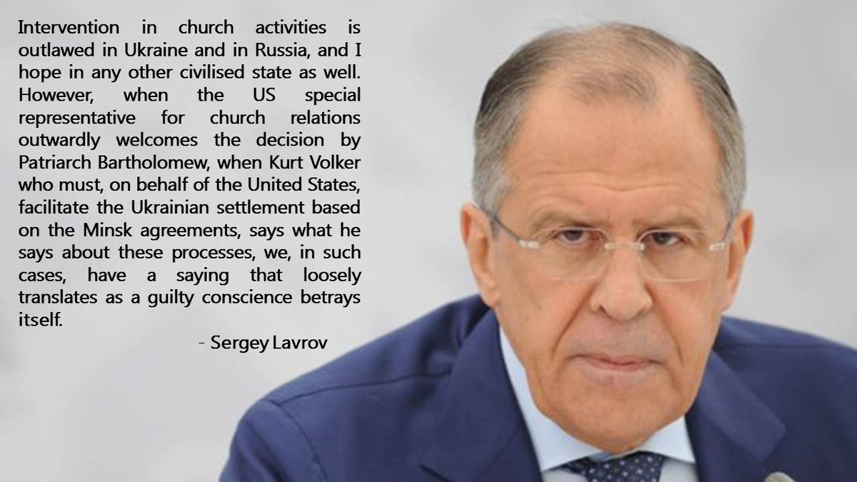#Lavrov on the autocephaly of Ukrainian Church: Intervention in church affairs is outlawed in both Ukraine & Russia. However, when US special rep. for church relations outwardly welcomes decision by Patriarch Bartholomew – as saying goes, «a guilty conscience betrays itself»pic.twitter.com/djcduQ4nNW