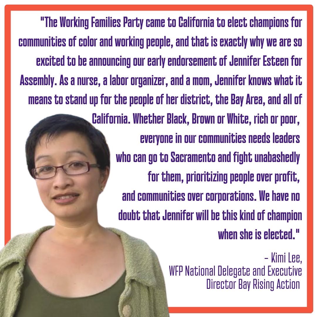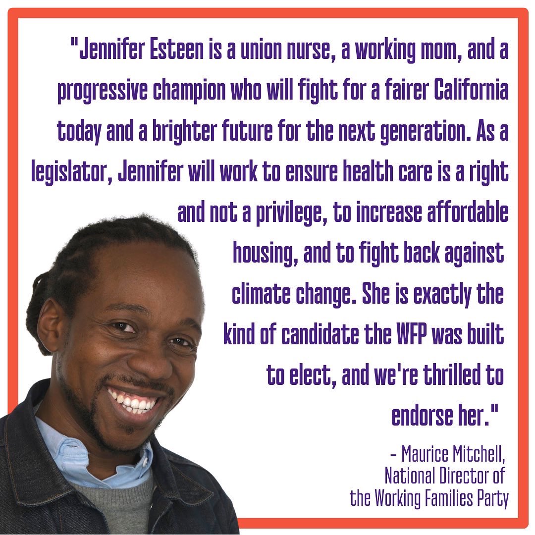 @Esteen4CA for State Assembly! Jennifer has shown herself to be a champion for working people in her organizing work and we’re excited to support her in her run for office.
