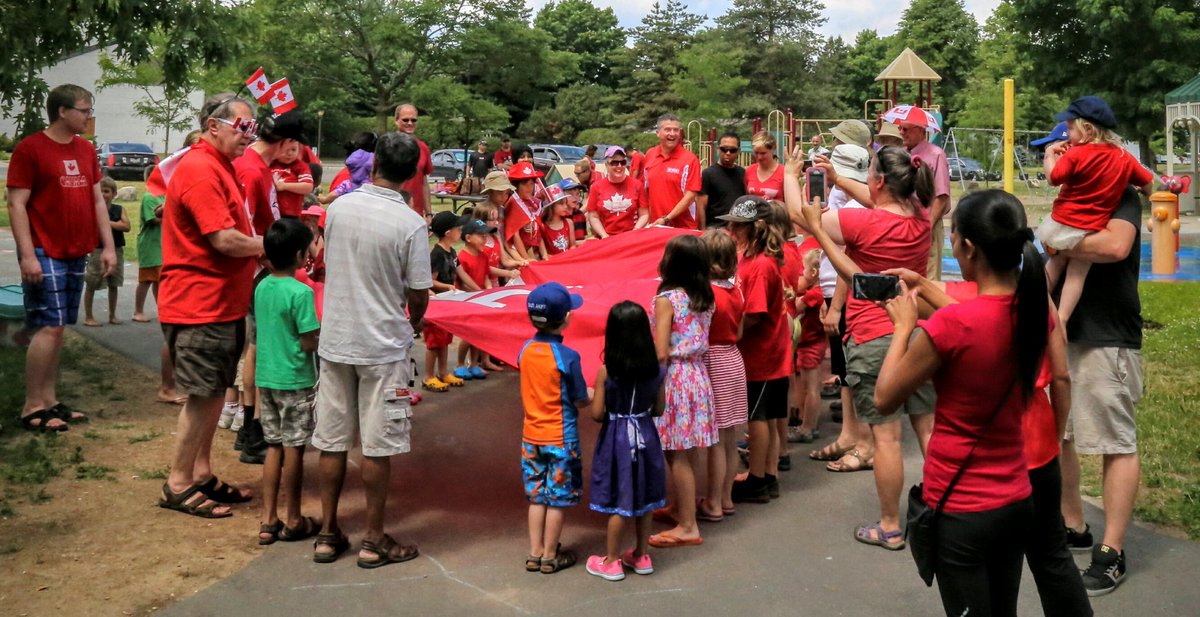 Gathered around the Canadian flag and sang O'Canada in the new version.