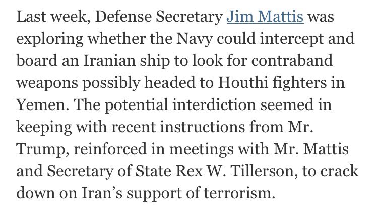 Mad Dog Mattis wanted to storm an Iranian ship in international waters and search it for weapons https://mobile.nytimes.com/2017/02/12/us/politics/national-security-council-turmoil.html?smid=tw-share&referer=https://t.co/dlxS5TTWfK …pic.twitter.com/dAUnQs4EFR