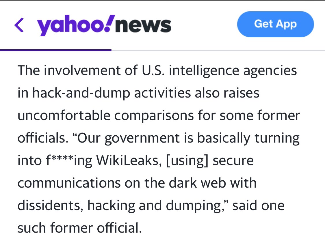 CIA officer: “Our government is basically turning into fucking Wikileaks, [using] secure communications on the dark web with dissidents, hacking and dumping” to media outletshttps://twitter.com/maxblumenthal/status/1283806625162199040 …