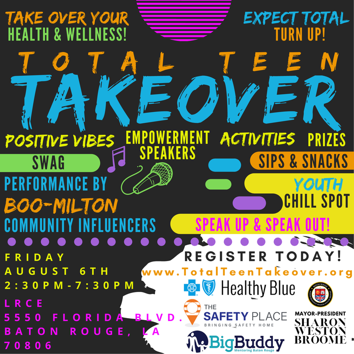 Are you ready for the Total Teen Takeover? Get ready for positive vibes, activities, prizes, and a live performance from Boo Milton! Register today to join us for the fun. Details below