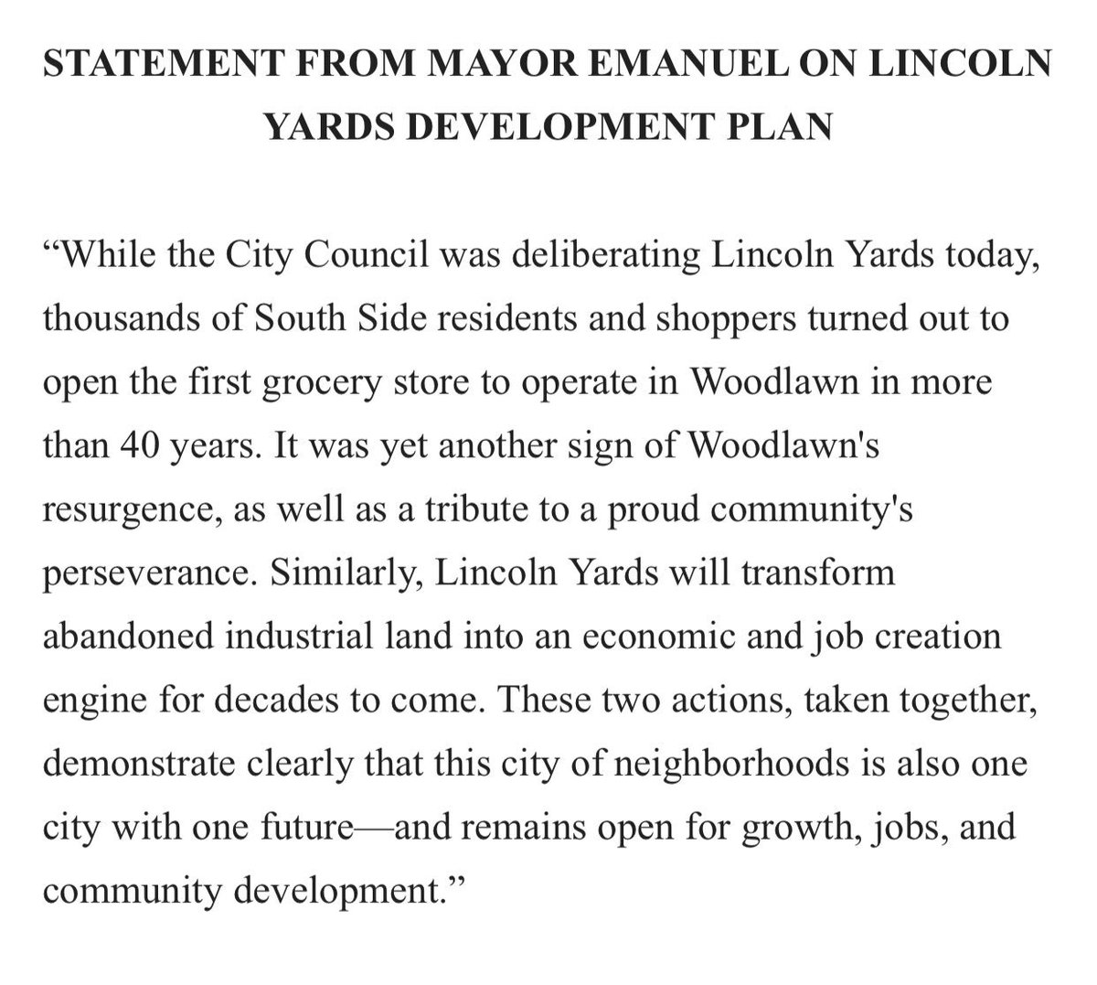 Thank u, Mayor. Haters gonna hate. U keep bringing in investment until ur last day in office. Chicago needs the jobs!