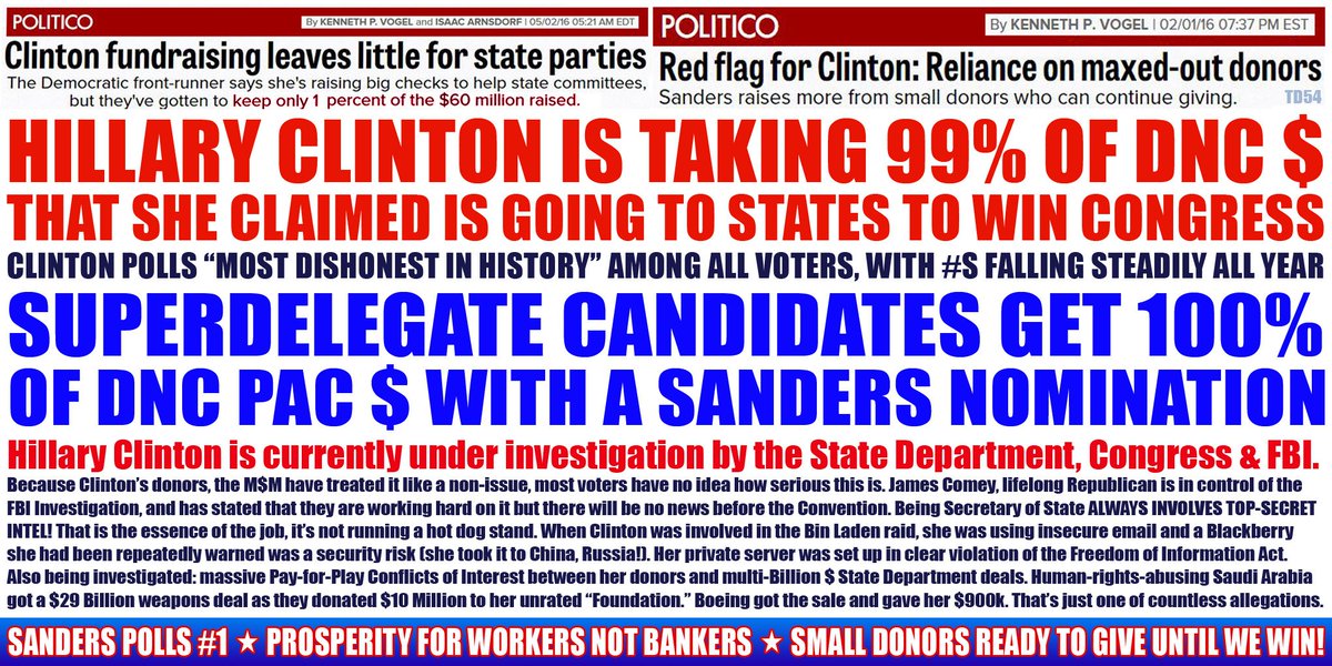 As Clinton's #'s fall to Trump SuperDs should see w/ Sanders they get 100% of DNC$ & WINpic.twitter.com/K9ao3zUs8q