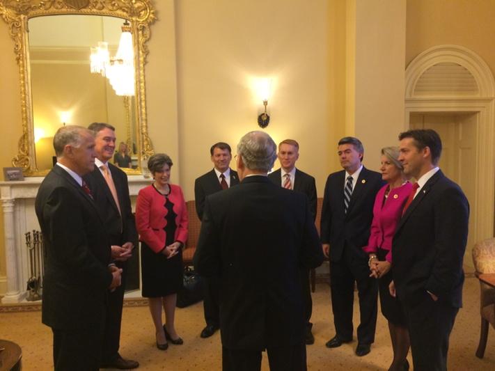 @Perduesenate "@McConnellPress: Sen McConnell welcomes new GOP Senators-elect to the US Capitol.#Kentucky. pic.twitter.com/93XpFAY4cC”