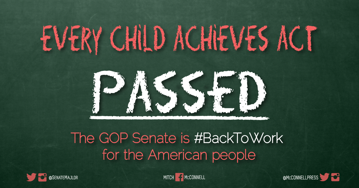 U.S. Senate passes #EveryChildAchieves Act - aimed at helping students succeed instead of helping Washington grow.pic.twitter.com/zHE9ktu9g5
