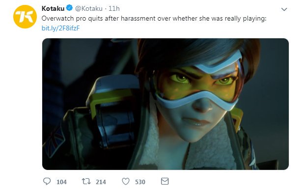 Let me get this straight > Overwatch player claiming to be 17 year old girl quickly climbs minor league rankings > Gamers smell a rat and claim she isn't who she says she is > Journos run usual "Woman Harassed In Gaming" stories > It was a guy all along > "Muh Social Experiment"https://twitter.com/gameinformer/status/1081312354141384706 …