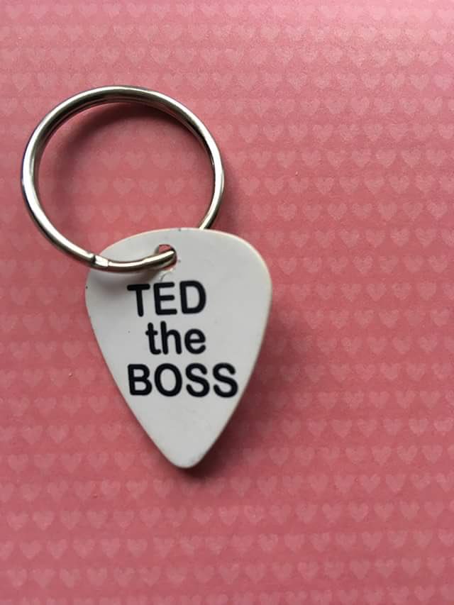 here modelling his “ Ted the Boss” Dog tag/charm. Ted was a finalist in our recent Dog competition and we are delighted to have him back to do a bit of modelling in his spare time .