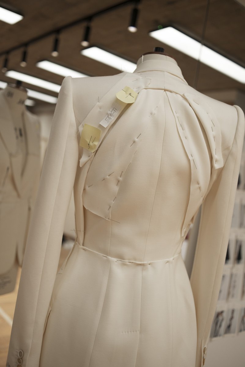 In Progress: an ivory wool tailored jacket with cut out harness detailing. Discover the