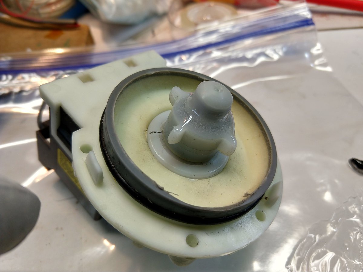 So, I put the dishwasher back together, and of course it still didn't drain, tho it did make various novel noises. Pulled it back apart and verified that the pump vibrated but wouldn't start.pic.twitter.com/ne7viNsghG