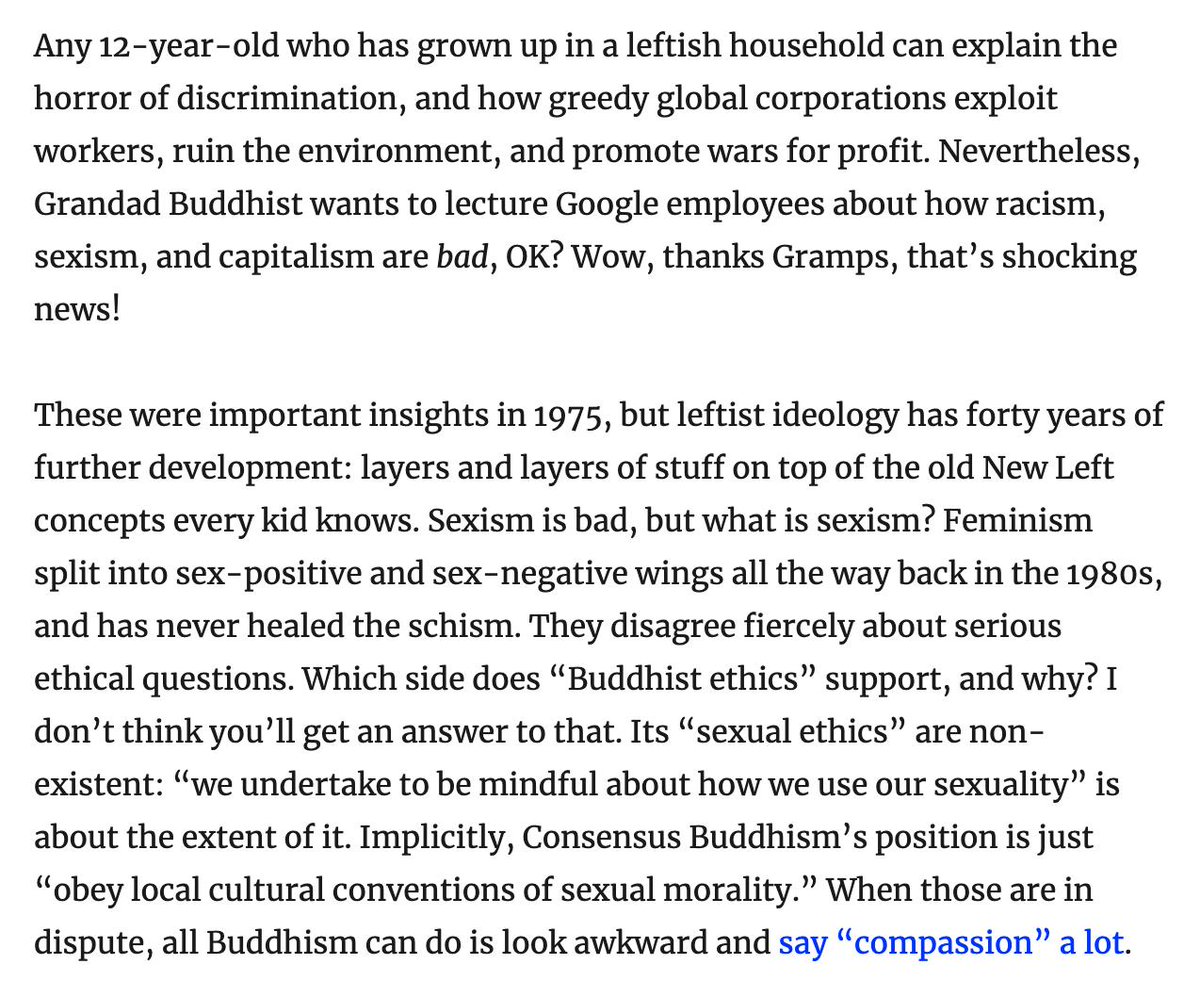 Ann Gleig @agleig’s new book _American Dharma_ describes my writing as “typically hyperbolic.” I can’t imagine why she would say such a thing. [draft text from a new introduction to my Buddhist ethics series, in book form]pic.twitter.com/v1jQ2EQtfS