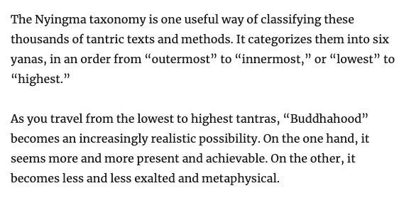 I’m describing “tantra” more-or-less from the view of anuyoga (which appears on the rigpawiki chart). That corresponds roughly to “nondual tantra” in some other Tibetan systems. https://vividness.live/2012/04/28/the-power-of-an-attitude/ …pic.twitter.com/FcuSZfNVCt