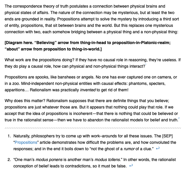 Yes, sorry, I was just using propositions as a handy example of a non-physical entity rationalists often give causal roles to. (Text scarfed from book draft.) Algorithms are another example. I was probably wrong to barge into @reasonisfun’s stream of thought.