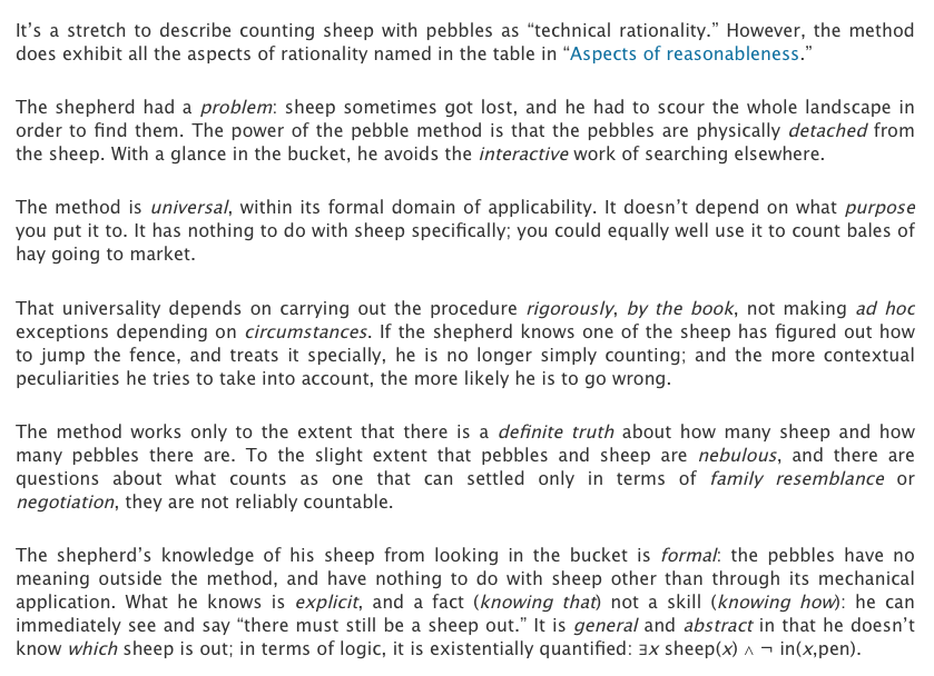 That explanation of the formal rationality of sheep-counting refers to this parable:https://meaningness.com/eggplant/pebbles …