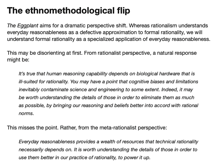 A disorienting shift of perspective: from seeing everyday reasoning as a defective approximation to formal rationality, to seeing formal rationality as a specialized application of everyday reasoning.pic.twitter.com/7cSteuguR5