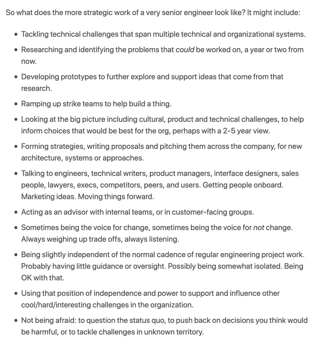 Great explanation by @keavy about what it means to be a seriously senior engineer. These are meta-rational activities: working across the boundary between the technical system and its nebulous-but-patterned context. h/t @vboykis http://keavy.com/work/thriving-on-the-technical-leadership-path/ …pic.twitter.com/DzWdsqh2ng