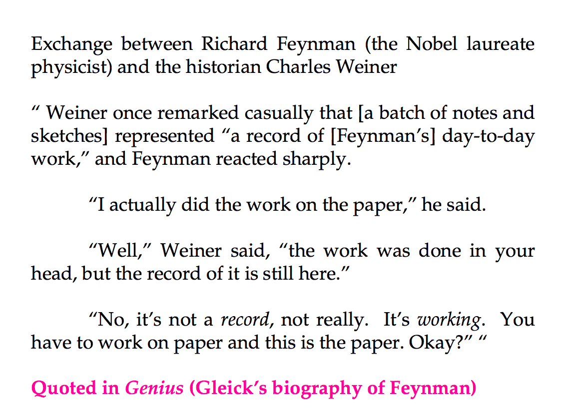 Look at a physicist, drop 2500 years of wrong philosophy of science, ask “how does that work?” Answer includes: “not without paper.”