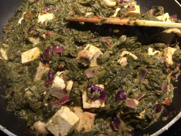 Made a saag paneer with large quantities of coriander seed. Wish @Meaningness were here to enjoy it.pic.twitter.com/dSiJMl8aqR