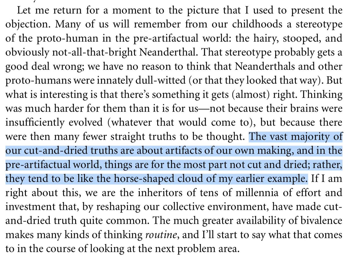 There are almost no just-plain-true (or false) facts in the macroscopic natural world. We’ve engineered our environment to support deductive reasoning, which doesn’t work in nature. Text from Elijah Millgram’s _Hard Truths_pic.twitter.com/e6HLMSjpb3