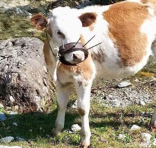 This device was put on this cow to prevent them from getting milk from their mother. Just how messed up is that?