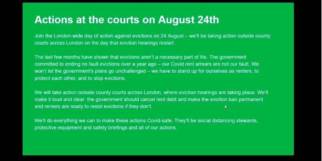 You should also keep an eye on our social media tomorrow as we are planning on turning up the pressure on the government to extend the eviction ban