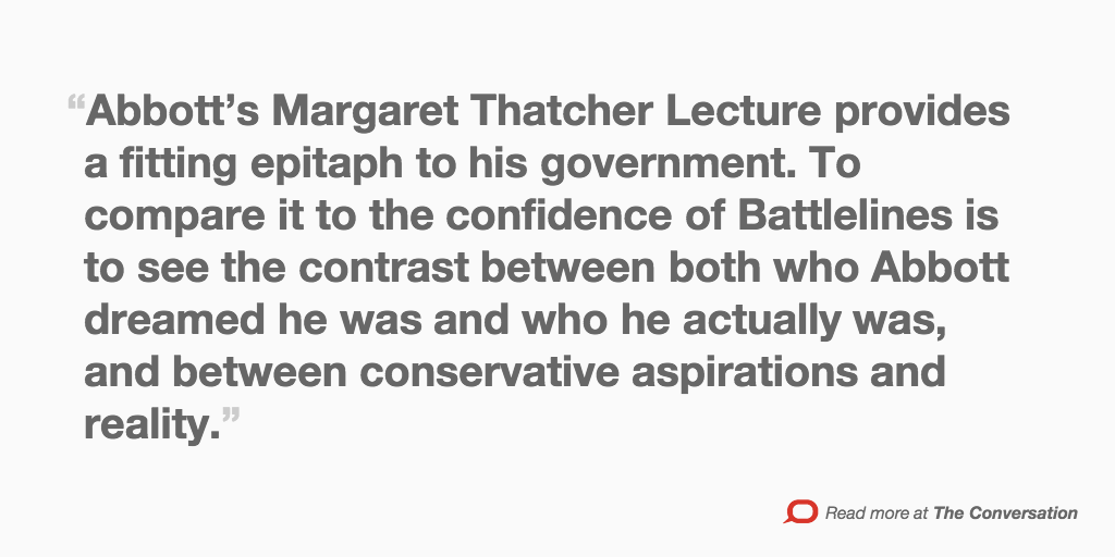 Will history remember Abbott as he sees himself? https://theconversation.com/abbott-stranded-in-between-fuzzy-nostalgia-and-a-pessimistic-present-49658 …pic.twitter.com/wF8eZxXZF3