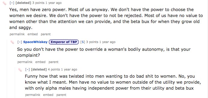 And then that last line about all we can do is provide companionship.... Like...yeah....that's why it's called a relationship.... So yeah, I see now why they say incel instead of abstinence. This is all kinds of weird self-victimization