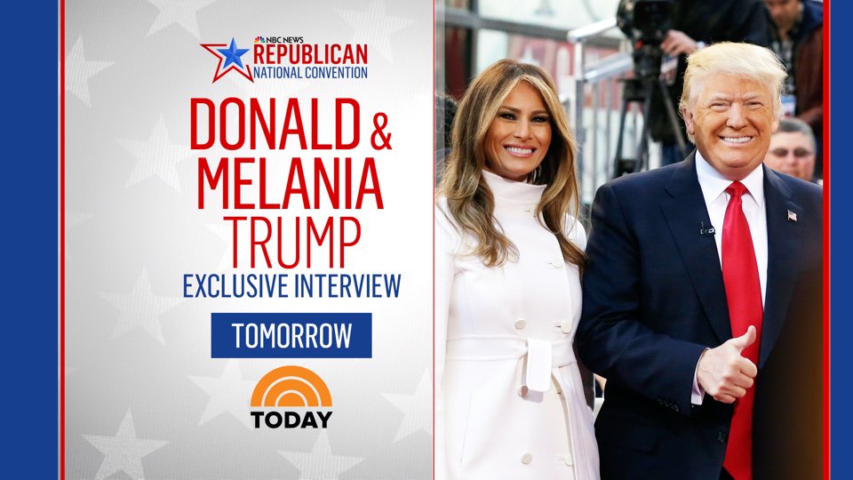 TUNE IN: Watch @TODAYshow's exclusive interview with Donald & Melania Trump tomorrow on NBC. #Decision2016 #RNCinCLEpic.twitter.com/JdHlOsKAuj