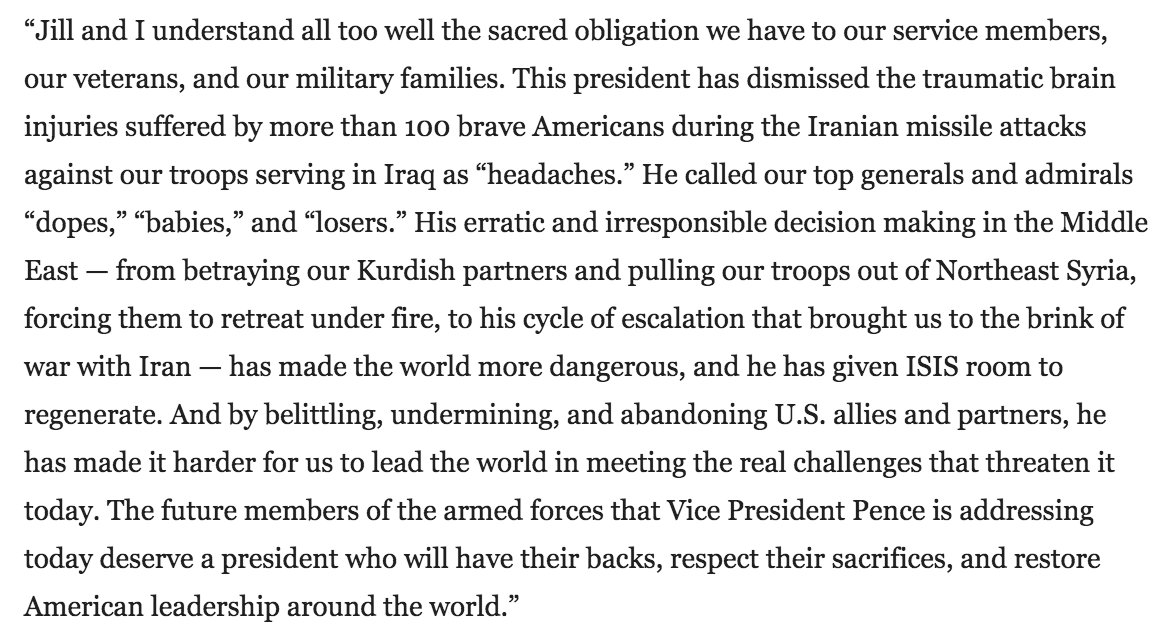 @JoeBiden has issued a statement about Pence's visit to The Citadel.https://twitter.com/PaigeinTN/status/1228094595046805504?s=20 …