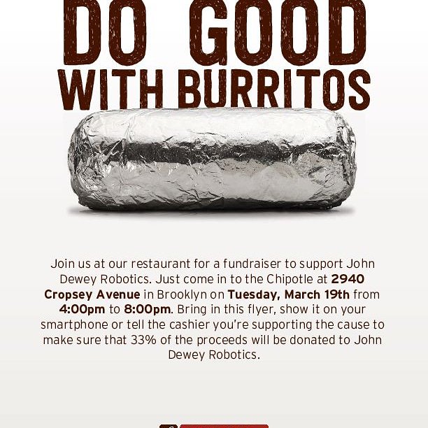 Mark Your Calendars! Please show your support at our local Chipotle next Tuesday while also getting a great meal.
