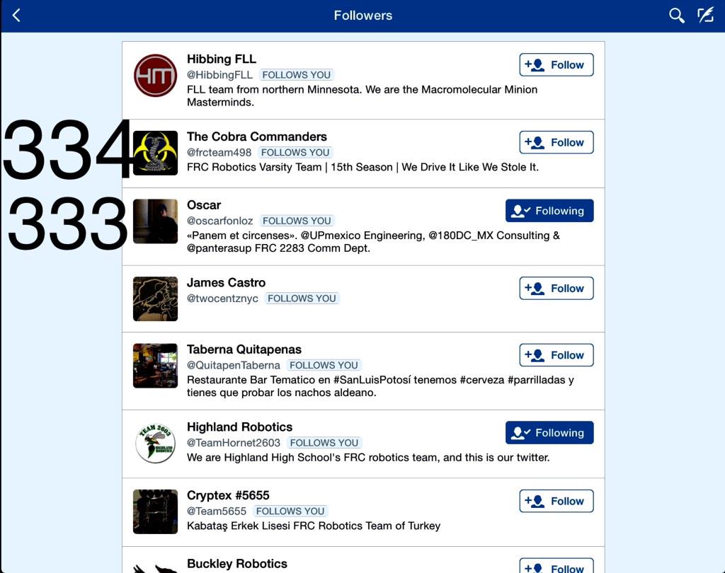 @frcteam498 sorry guys you are our 334th follower! D: