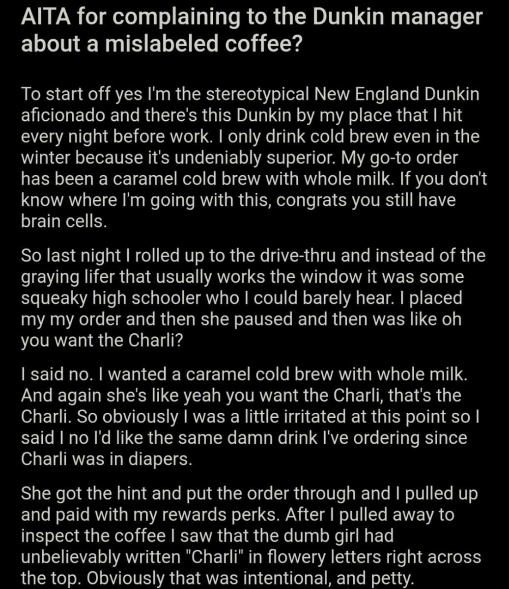 AITA for complaining to the Dunkin manager about a mislabeled coffee? https://bit.ly/3lMJoLc pic.twitter.com/c0mtbgLISM