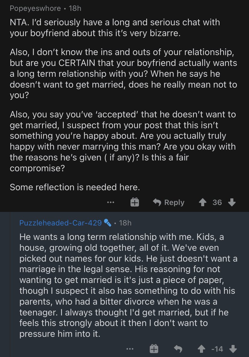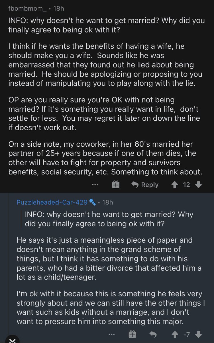 AITA for telling my boyfriend's co-worker that we're not married? https://bit.ly/3pTqiEI pic.twitter.com/O9FCSizF8B
