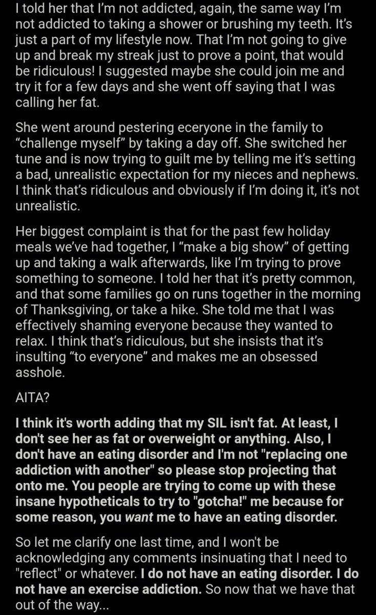 cw: discussion of eating disorder/exercise AITA for refusing to “just skip a day” of my commitment to 20,000 steps a day just to prove something to my SIL? https://bit.ly/2NVUFfJ pic.twitter.com/pUW7phS8yq