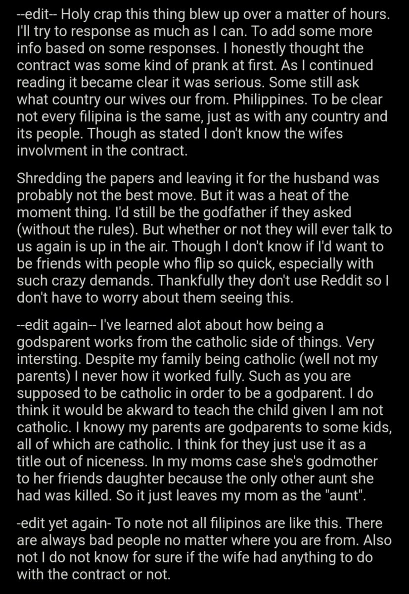 AITA for refusing to be my friends babies godfather after I was given a "legally binding contract" to sign with requirements attached? https://bit.ly/3usrFMn pic.twitter.com/WoPdtbgCUh