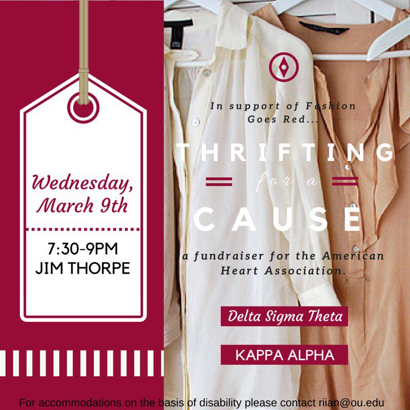 Kappa Alpha presents Thrifting for a Cause. Come shop on a college budget for trendy styles! All… https://www.instagram.com/p/BCt1FIhOp4F/