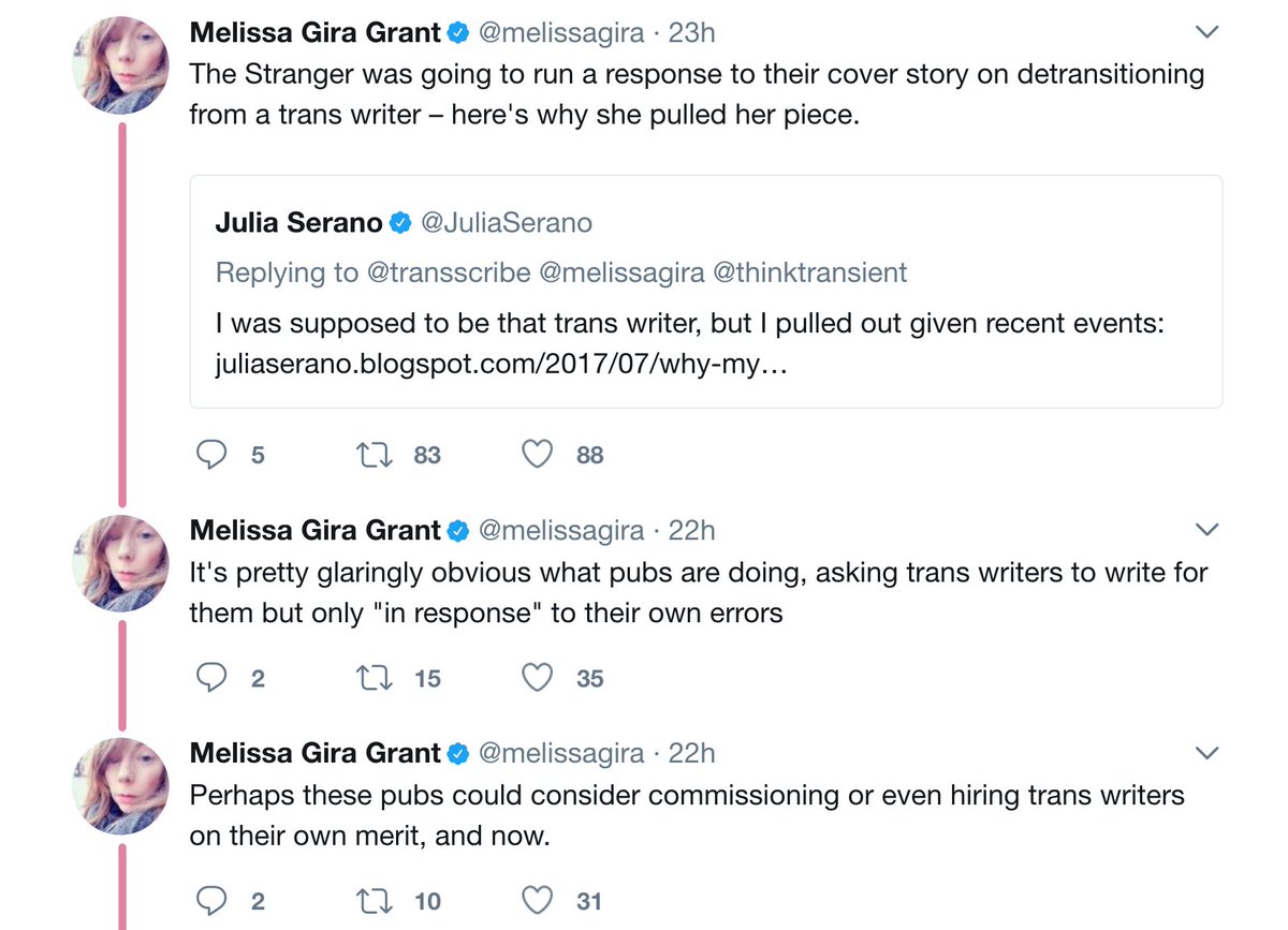 Wow. If this doesn't prove trans activists want only to shut down conversation, idk what does.https://www.thestranger.com/slog/2017/07/03/25262759/a-response-to-the-uproar-over-my-piece-the-detransitioners …