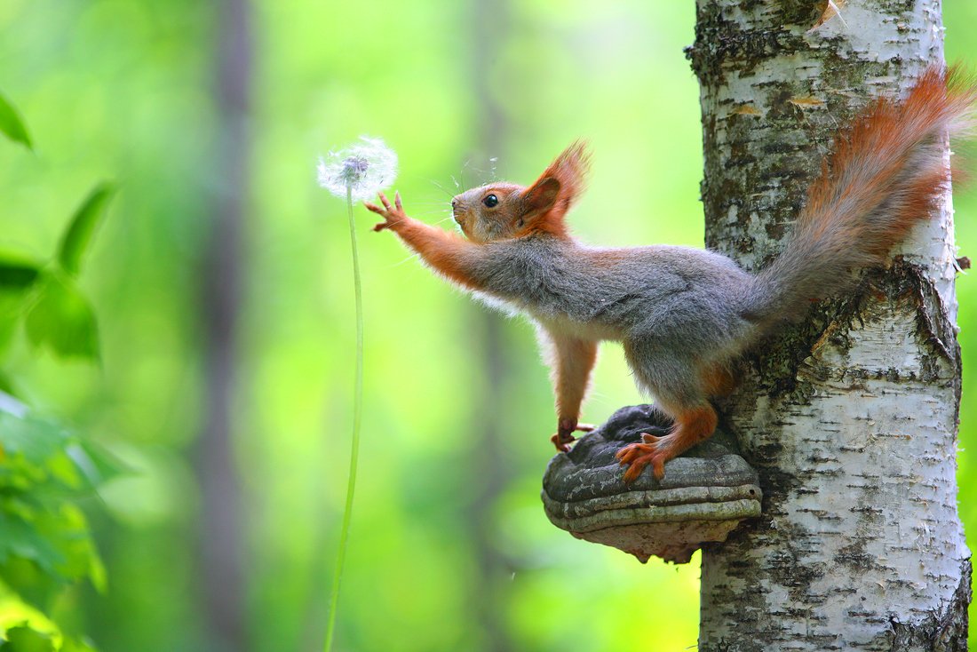 Baby squirrel and dandelion.