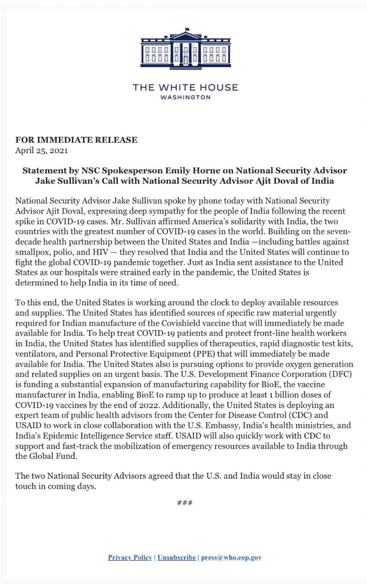 for scaling up vaccines, PPEs, ventilators, oxygen supplies, rapid tests—& financing to ramp up of more vaccine factories (including the $1.50/dose vaccine by @PeterHotez), & send CDC resources. HT@JakeSullivan46@ASlavitt#COVID19pic.twitter.com/9Rwk8iGNte