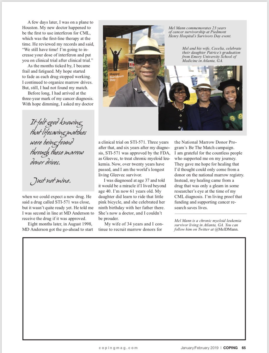 #Gleevec & now am the world’s longest living Gleevec survivor. http://join.bethematch.org/MelMann RTpic.twitter.com/ydWkLVGCTfThanks. Twitter will use this info to make your timeline better. UndoUndo -