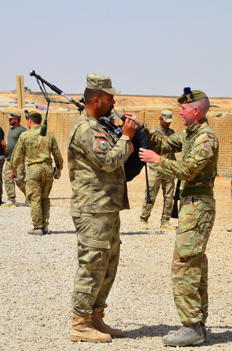 During some downtime a 4th Battalion The Royal Regiment of Scotland (4 SCOTS) piper instructs an Iraqi soldier on the bagpipespic.twitter.com/tKQD8YCF2W