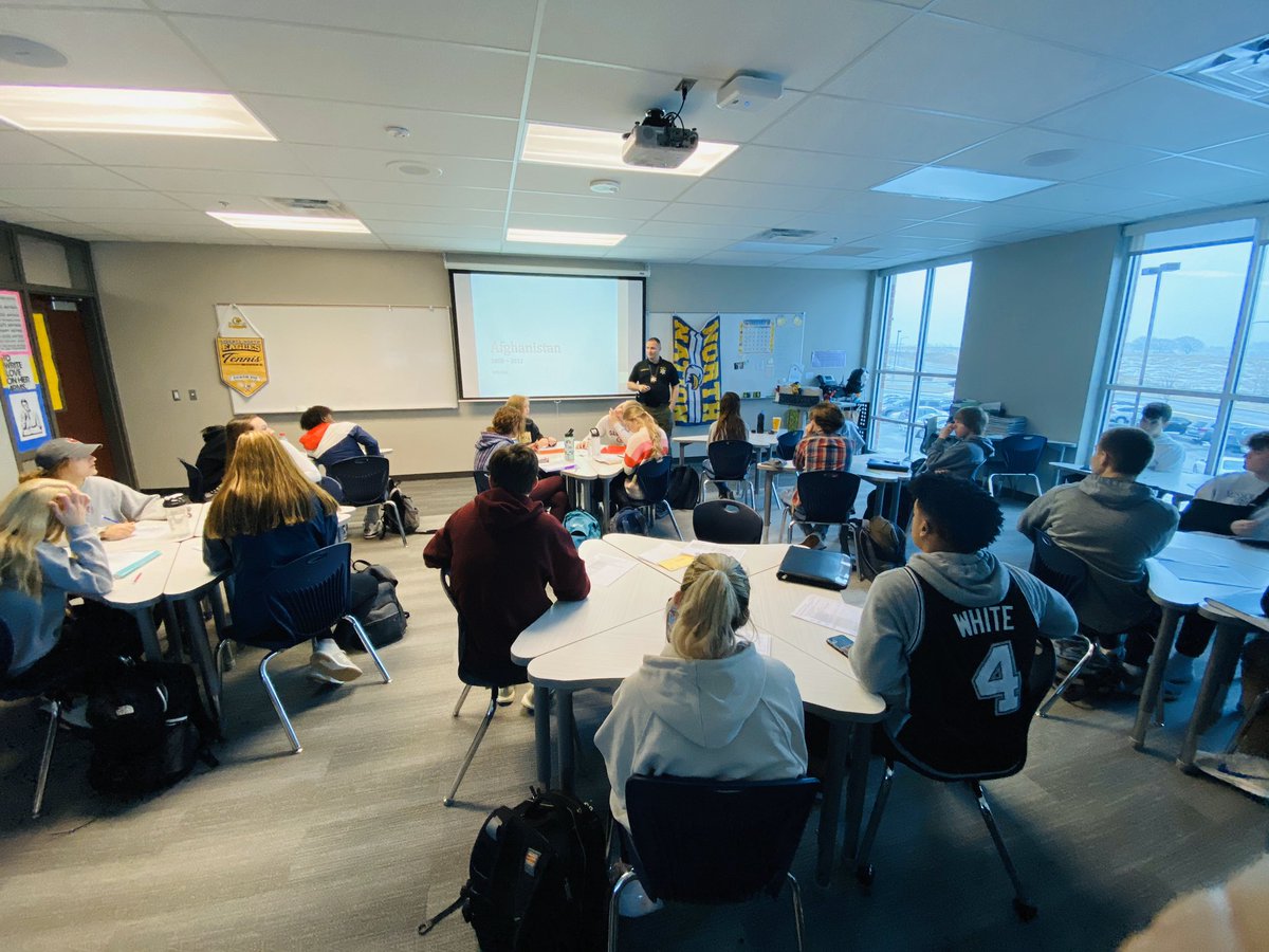 @WillAkin_ is spending time with the seniors at Liberty North High School today.@LNEagleNews The students are reading A Thousand Splendid Suns and Captain Akin is sharing his life experiences and answering questions from his time in Afghanistan, 2009-2012.pic.twitter.com/yjk6b1wwTE – mjesto: Liberty North High School